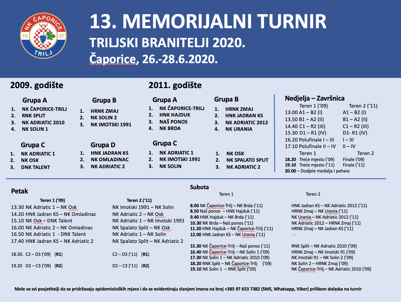 17.30 NK Solin 1 – NK Adriatic 2010 3 : 6 NK Imotski 91 – NK Solin 2 8 : 4