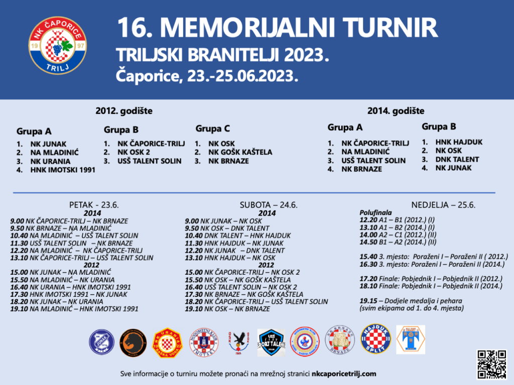 19.15 – Dodjele medalja i pehara (svim ekipama od 1. do 4. mjesta)